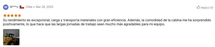 Il cliente dalla Russia ha immediatamente preso una prova del caricatore da 5 tonnellate dopo averlo ricevuto. Dissero: "Questo caricatore è ancora più manovrabile di quanto mi aspettassi. Funziona senza intoppi senza sussulti". Ciò è stato affermato anche dal nostro capo. E le tue risposte alle vendite sono molto rapide e responsabili. Sei un partner affidabile.